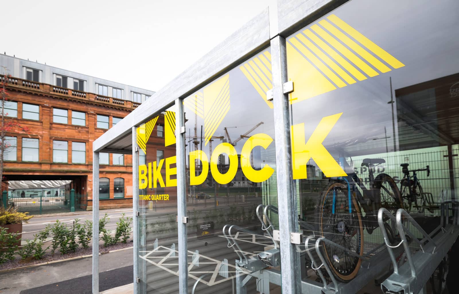 The TQ Bike Dock, located at the junction of Queen’s Road and Olympic Way, provides secure cycle storage for standard and non-standard bikes to those living, working, visiting and staying in the Titanic Quarter and augments the cycle infrastructure already in place nearby.